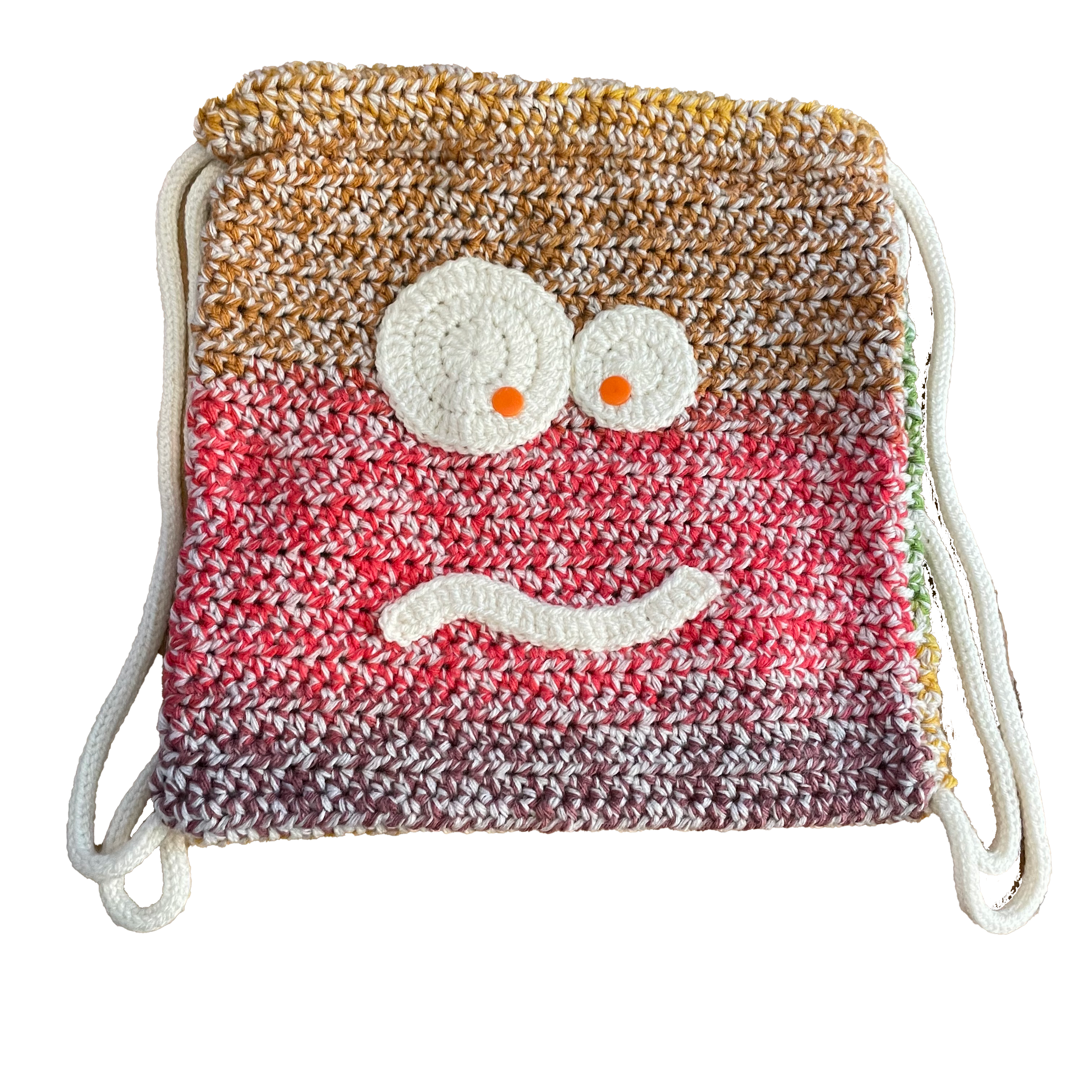 Handmade crocheted monster bag. Made to an original design by Lisa.